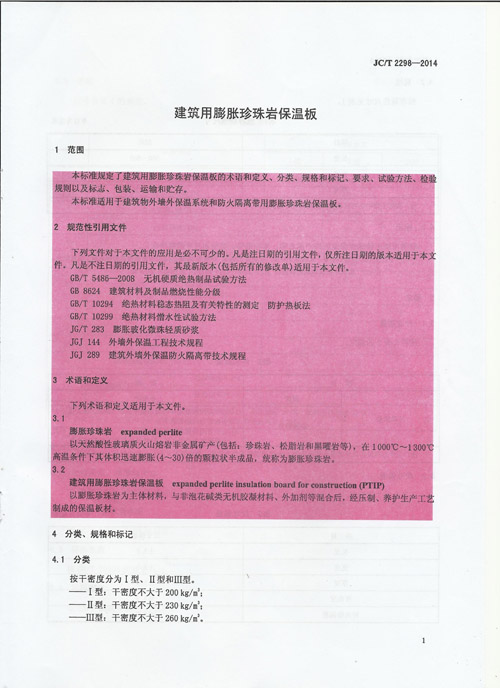 《建筑用膨脹珍珠巖保溫板》行業(yè)標準