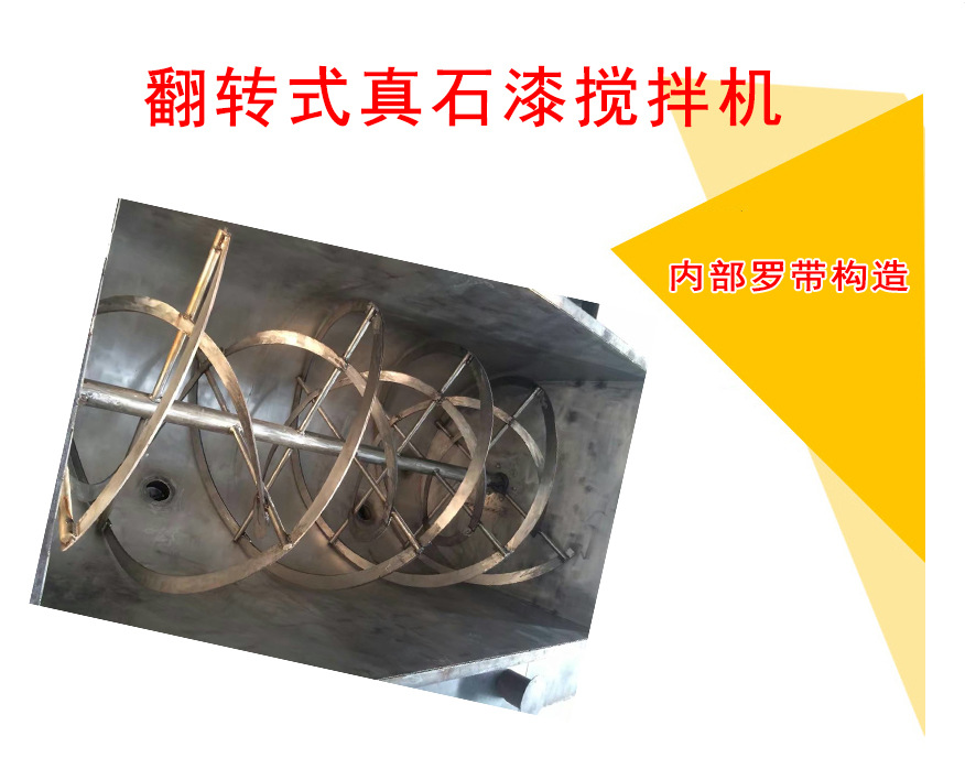 真石漆攪拌機混合均勻度高,特別是針對粘性物料,螺旋帶上可以安裝刮板,更加適應(yīng)粘稠物料的混合。